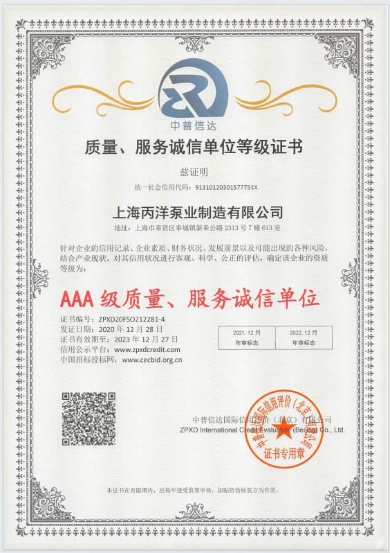上海丙洋泵業集團有限公司是專業從事水泵、生活消防自動給水設備及水泵智能控制的開發、生產、銷售為一體的生產型現代化民營企業.主要產品擁有立式多級消防泵、立式單級管道消防泵、消火栓噴淋泵、浙江排污泵、成套供水設備、上海消防泵、管道離心泵、消防泵、恒壓消防泵,化工泵,離心泵、管道泵、多級泵、XBD消防泵、排污泵、自吸泵等系列產品.丙洋泵業在以質量求生存,科技創興;走向未來的方針,不斷開拓進取、創新發展,在長期的實踐中形成了一套完整的質量管理體系,并配備了一支安裝調試、維護的售后服務隊伍.本公司以優質的管理、優質的產品、優質的服務贏得了國內廣大用戶的信賴和好評.